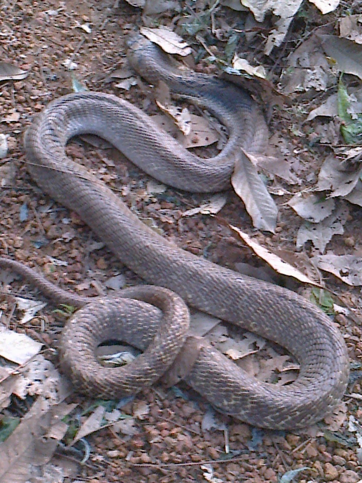 ഇര വിഴുങ്ങിയ മൂർഖന് വിശ്രമം നാട്ടുവഴിയിൽ-നടുവിൽ പടിഞ്ഞാറ്നിന്ന് മൊബൈലിൽ പകർത്തിയ ചിത്രം